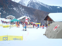 The road to the start was a windy switch back secondary road- it was essential that vehicles have 4wd or chains- there was a bit of a block up when a van from Aosta Italy needed to put chains on part way up the route to the start. (Thank God I got a ride w/ the Swiss- it would have been me fumbling w/ the chains if not) We all managed to get to the start in time.