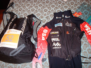Up on top of the crest- people were cheering. Go USA. Di! Di! Brava Bella! Forte! Go Nina. OBAMA! OBAMA! (very fitting for inauguration day!) There was lots of great cheering and support from people at every transition and at tops of the hills. People were amazing to see someone from the USA racing. The suit from Texner was awesome and it was great to have our team suits so people knew where we were from.
